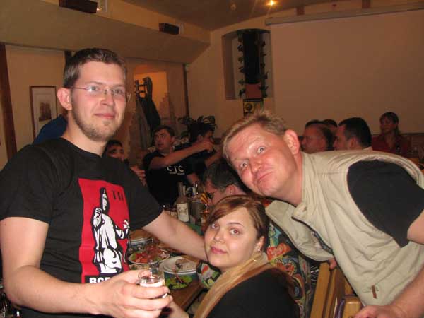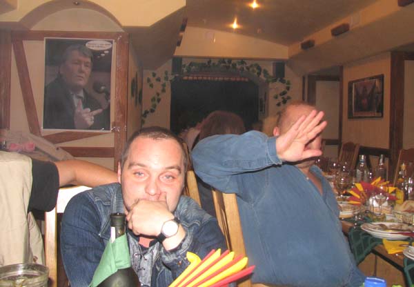После галасования камрады дружно двинули в соседний зал отмечать такое важное событие. Стол был накрыт очень красиво. Жалею, што нету фоток той здаровенной метровой фаршырованной рыбины, которая софсем случайно оказалась между мной и Фишером. Фсьо располагало к приятному времяприпроваждению…