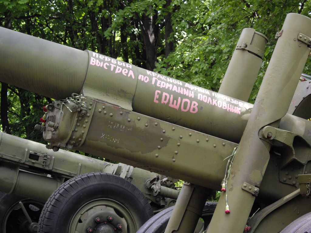 11)Крайние две слева-направо - 152-мм пушка Бр-2,  203-мм гаубица Б-4