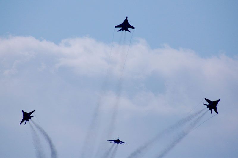 Фся эта литающая ёбань заебла меня ишо в децтве лет ..ццать назад ва время пражывания на даче между Бронницами и Раменским.  Идут себе детишки паутру за грибами, а ети йобаные чюдеса техники как налетят са стараны Жуковскава, тока фсе грибы распугают сваими виражами бреющими и переходами звукавова барьера на сверхмалых высотах. К ебеням фсю эту ваенную авиацею, адинхуй ана тока на таких Максах-хуяксах и летает, а так абычно стаит и ждет падвоза дарагастоящщева топлива и благаприятных пагодных условий.