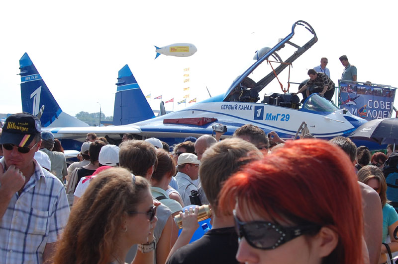 Цыркуль маладца!! Фотоотчет 5 баллов. Был и я там в субботу. Добавлю мнение. Народу в этот день было больше, чем на любом из прошлых салонов.К стендовой экспозиции не протолкнуться, количество всевозможной летательной техники в избытке. Детальный осмотр каждого пепелаца занял бы целый день, поэтому поспешил на поле насладится летными качествами аппаратов и мастерством пилотов. Полеты, конечно же, вызывают всплеск эмоций. Аффтар красиво все изложил. Согласен про выебистость пендосов на F-15. Резкие как газировка, а вообще неплохо смотрелись. Думаю, что по настоящему оценить и сравнить с нашими Су можно было бы в совместном пилотаже. Видимо для организаторов это сложно. Вообще организация такого массового мероприятия отработана годами и заслуживает высокой оценки. Единственный минус - отсутствие достаточного количества мусорных контейнеров нужного объема. И еще, на мой взгляд все таки не хватает, какого то драйва. Комментатор из Красноярска сообщил, как у них стекла лопались отрева двигателей, так вот в Жуковском этого нет.  Раньше приходилось быть на шоу в других городах и скажу точно, высота пилотажа была ниже, а зрелишный эффект выше.
