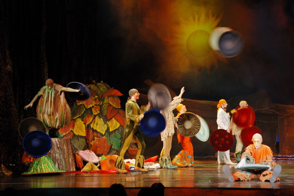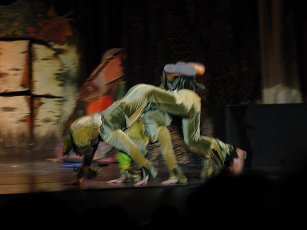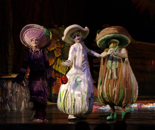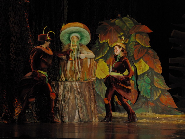То, что происходит на сцене потом, с трудом поддается логическому анализу, поскольку зрелище толи символизирует наркотический бред занятой поисками старушки (она иногда забредает в зрительный зал), толи вакхические пляски грибов в пересказе двух муравьев-путешественников (фото 3).
