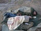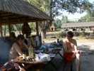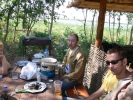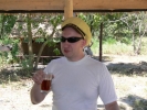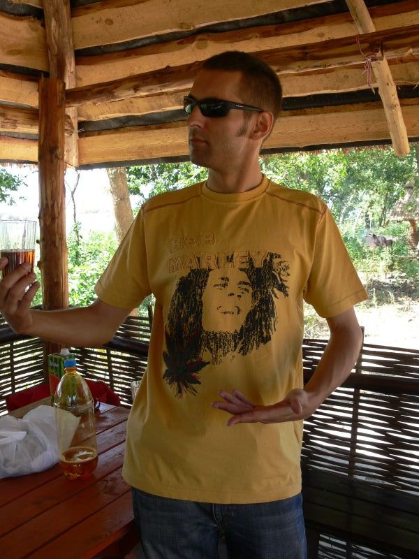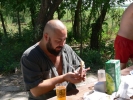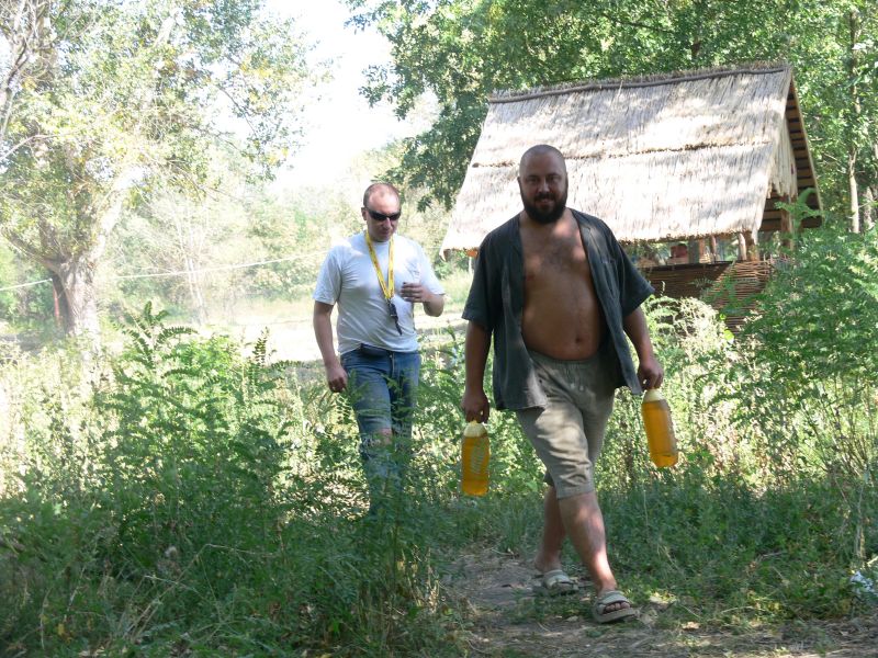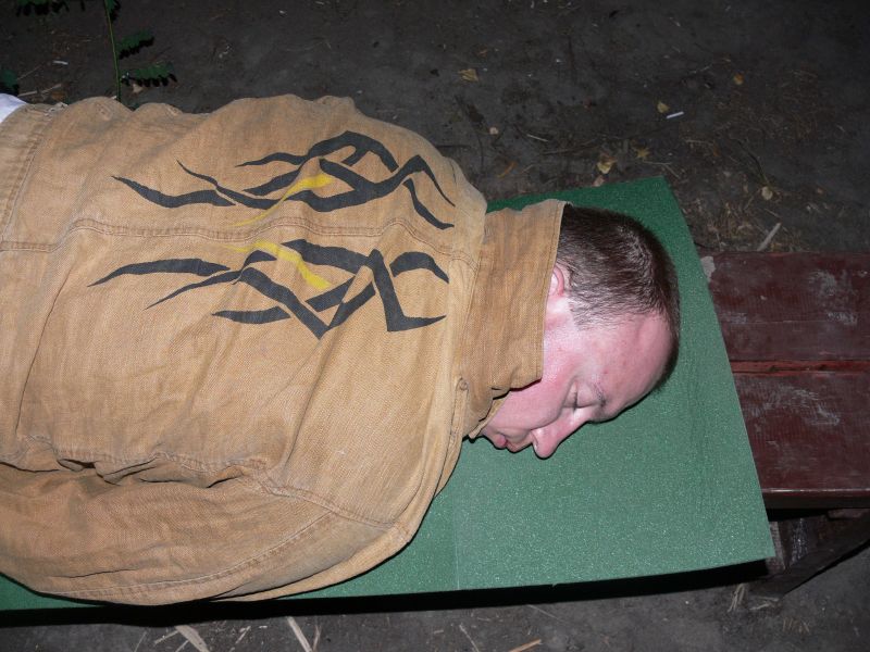 Рано утром наше стойбище являло собой весьма живописный пейзаж. Так и хотелось вслед за Пушкеным воскликнуть: “О, поле-поле, кто тебя усеял мертвыми костями”. Падонки спали в беседке, в палатке и на надувном матрасе размером с Эстонию. Кости, однако, вскоре зашевелились, восстали из небытия и принялись привычно жечь. К примеру, Растаман-Пиздопроходец на пару со Спецназом ГРУ (с дебютом на тусе, кстате) отправились в глубинную разведку и обнаружили пустующую барную стойку с пивными наливайками. Одна из наливаек оказалась заправленной пеффком марки “Халява”, чем падонки и  поспешили воспользоваться. (ЫЫЫЫЫЫЫЫЫЫЫыыыыыыыыыыыыыы.........)