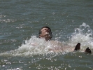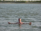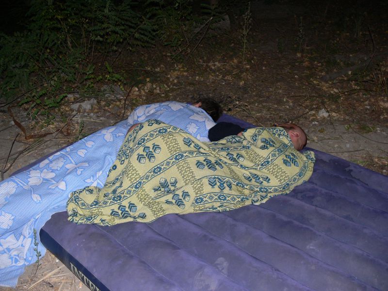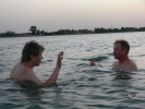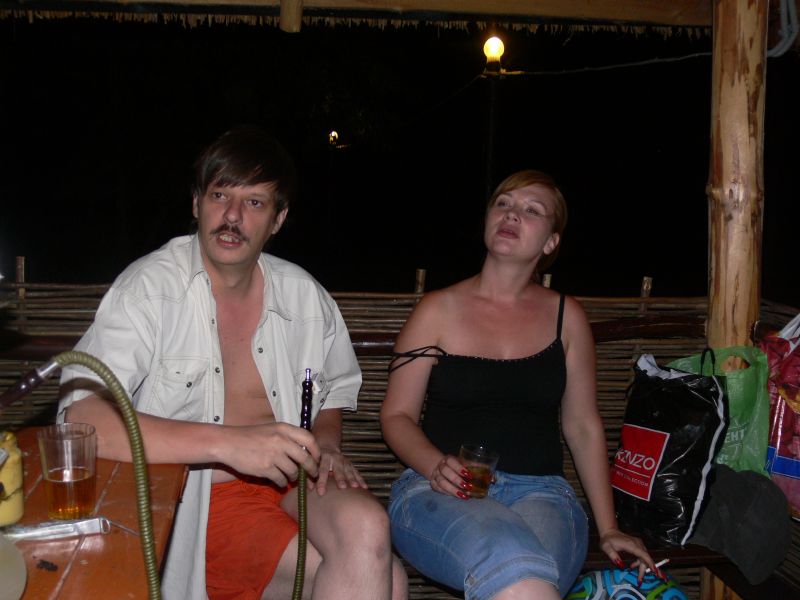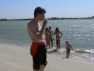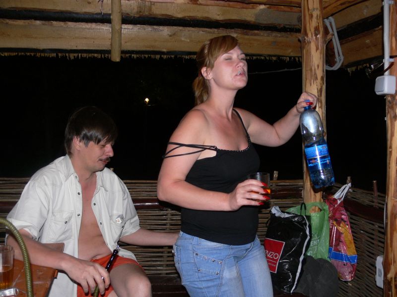 В приципе, остров работает до 23 часов. Но Казак (ВЧ) позаботился, чтобы нас оставили с ночевкой. Веселье разгоралась. Уже когда стемнело, дочка Гарика пошла купацца и  обнаружила вылезающее из воды существо. Ихтиандр?  Несси? Не фига! Это был строитель, отмечавший профессиональный праздник. Вскоре вместе с ним  к нашему шабашу приперлись еще трое строителей и бутылка вотки. Мотивы рыцарей мастерка изыском не блистали: у нас были дамы, а у строителей только прораб. А с прорабом не забалуешь...