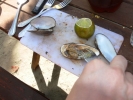 Обозначились и некоторые традиции типа добывания камрадами Мочканем! и Лешегом  экзотического корма. На этот раз падонкофский стол украсился свежевыловленными мидиями. Дегустация удалась, ибо под вотку можно сожрать что угодно.