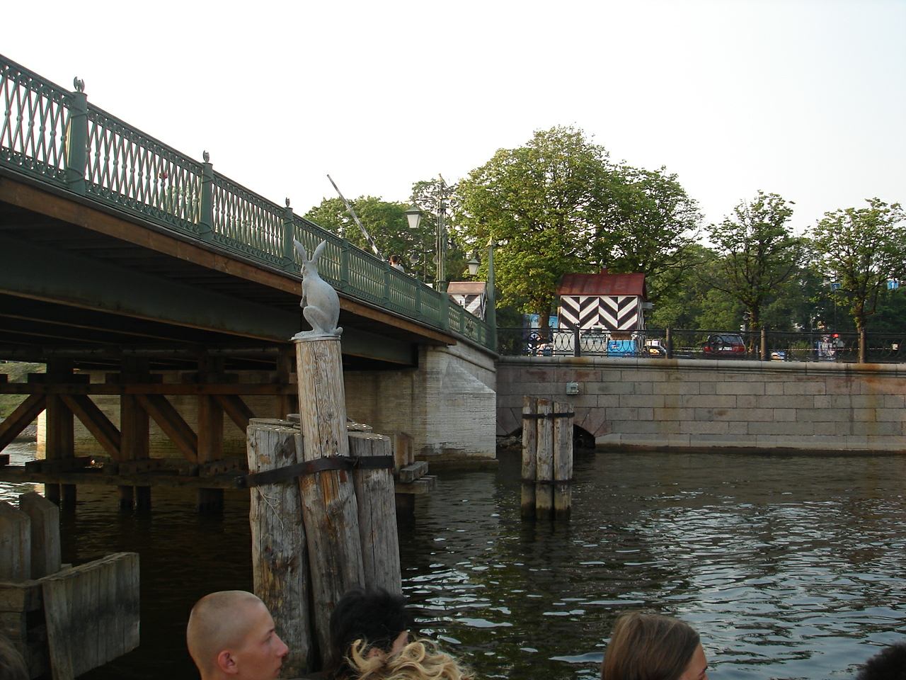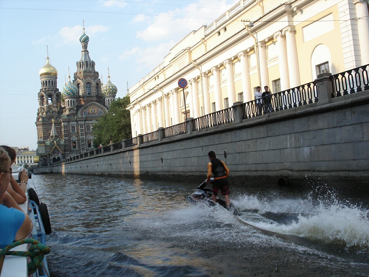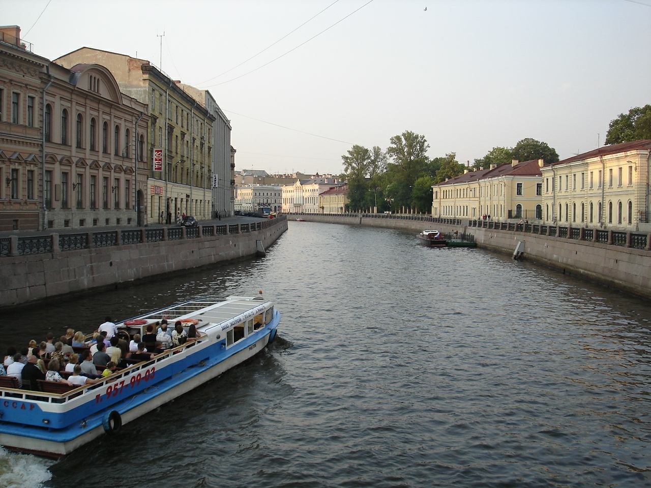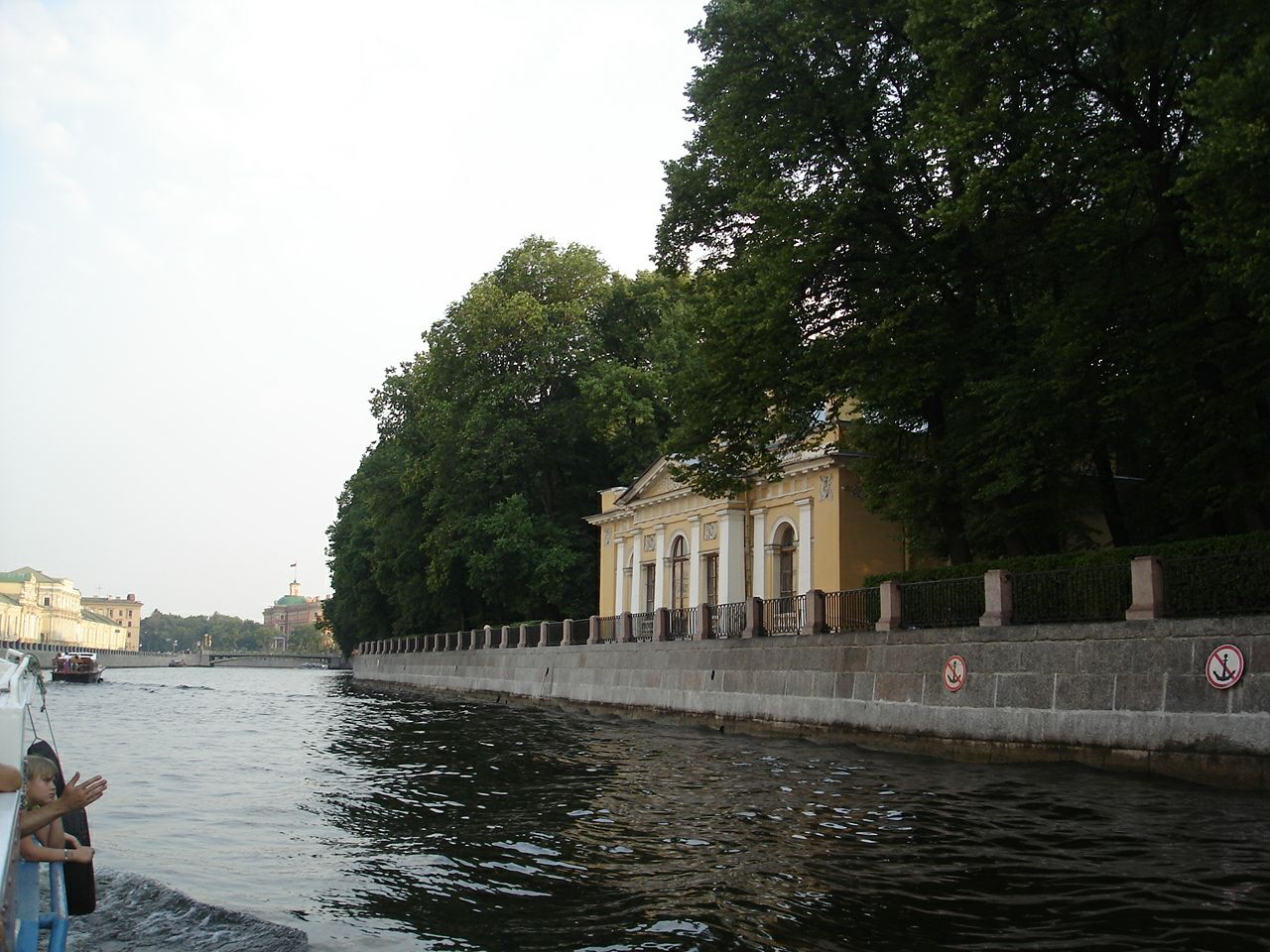 Прилетаю, выхожу из самолета – как в Африку прилетел, +34С. Ни ветерка, ни хуйа. В  Москве тоже жарко, конечно, было, но не так. Ну, встретились, поехали в центр, прошли по Невскому, взяли билеты на ночную экскурсию по городу и пошли на пристань на канале Грибоедова на кораблике кататься. Для интересующихся – прогулка по каналам с выходом в Неву, разворот в районе Кунсткамеры, далее к Заячьему острову, вокруг острова и с Невы снова в каналы – стоимость экскурсии 400 рублей. Время – 1 час. Нормально! На воде прохладно было, очень хорошо. Только на воде катеров и лодок разнокалиберных дохуищща, один из катеров нашу посудину чуть в бок не уебашил. На таких скоростях там летают по воде. Еще красиво, как на аквабайках рассекают по каналам. Было такое ощущение, что водный транспорт в Питере ничуть не менее важный, чем автомобильный. И люди не ради развлечения, а по делам по воде передвигаются.