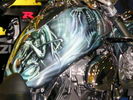У меня Вирага 750 синяя, на спине жилетки аэрография с пантерой.