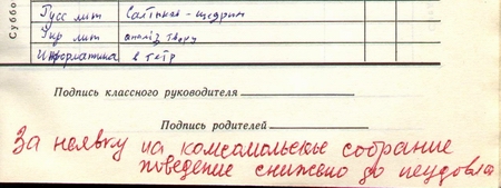 Посмеялась и вспомнила, как мне в 5 классе в дневнике записали неуд. по поведению