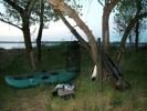 Рыбалко в этом мае - полное гамно. Волжская ГЭС воду пустила рано 13 апреля, а мы приехали 3 мая и уже на половодье (Мазаю превед). Таг што по спинингам и удочкам- результат нулевой. Каг ни странно, донки работали заебись, вплоть да щуки и жереха на червя (бывает и такое). По идее щука и окунь уже отнерестились еще в апреле, должны были переболеть и начацца жор, но хуй... вады дахуя. Ну и пришлось, хоть я это дело не люблю, ставить сети. Ваабще должен начацца залом селедки, но хуй знает чо случилось, короче небыло и её. Остров на котором мы постоянно отдыхаем затопило почти полностью, оставиф нам небольшой пятак для постанофки лагеря. В общем там где мы пешком охотимся на дичь ранней весной и осенью пешком, сейчаз ходили на моторе...