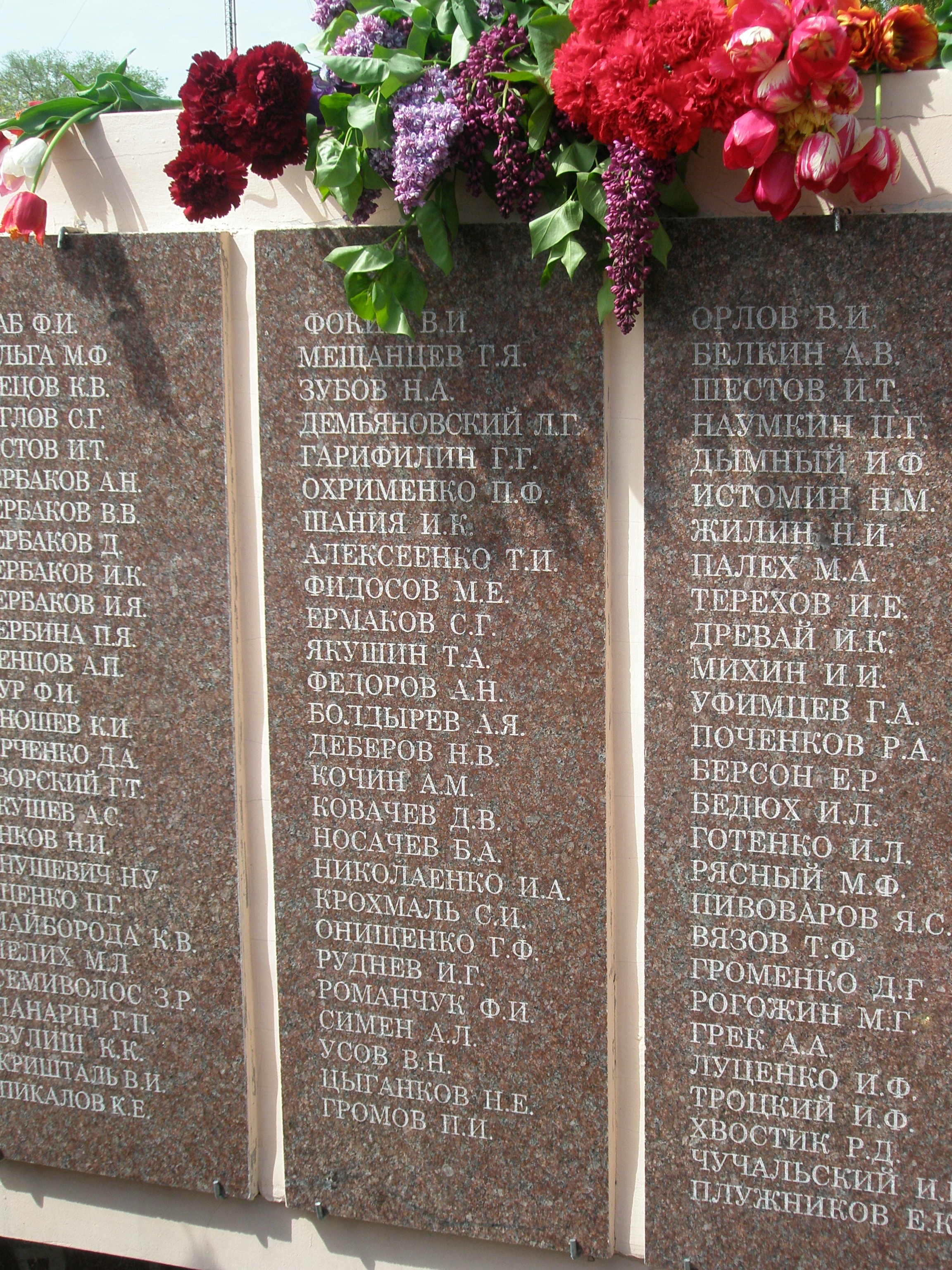 Салют, камрады! Решил напейсать отчот о поездке на братскую могилу, где лежит мой героический дед и еще много героических дедов и прадедов. Путь из Кривбасса пролег в село Великая Костромка Остолоповского района Днепропетровской области, Окраина. Сама никопольская трасса еще ничего, а вот съехав с нее, последние 8 км до пункта назначения заняло у нас минут тридцать. Короче. Село как село, в центре стоит Лукич (фото №1), а иначе у нас и не бывает, мы ж не ёбнутые западенцы, чтобы демонтировать памятники политическим победителям, а на их место ставить памятники политическим лузерам, пропидорам типа Бандеры или Мазепы. Сельсовет - старый, двухэтажный, кабинет председателя сельсовета напоминает кабинет скромного руководителя советской эпохи. Никакой секретутки у председателя не оказалось, незнакомых гостей из города он встретил просто и радушно. В 9:50 началось шествие от сельсовета до стелы на братской могиле, там недалеко, всего полкилометра (фото №№2,3,4,5). Сама стела (фото №6) – еще советских времен, но ежегодно в граните выбиваются все новые и новые фамилии. Есть и фамилия моего деда (фото №7). Председатель сельсовета (фото №8, на переднем плане) рассказал, что по свидетельствам пенсионеров, в детстве они находили много советских орденов, игрались ими, после чего – забрасывали. А ведь по номерам можно было установить всех неопознанных погибших…
