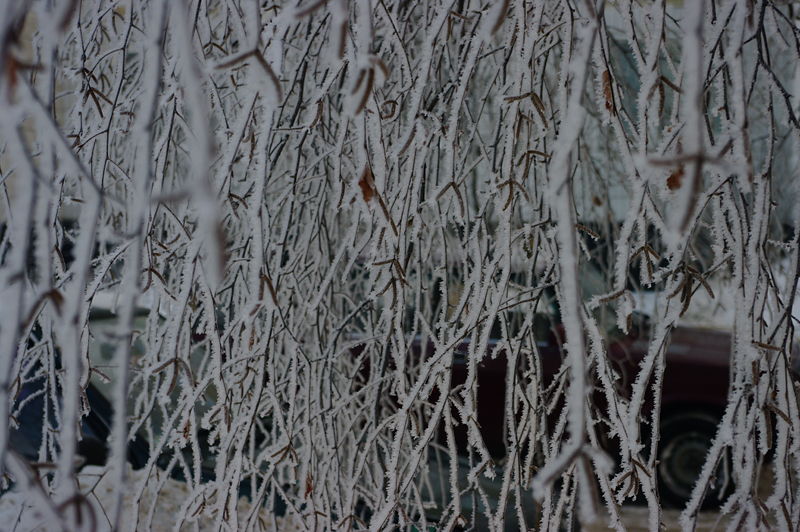 Вот и незаметно подошли к концу новогодние праздники. Все допито, докурено, до... (кароче, кто там чем занимался на Новый Гот). И наступил, сука, панедельнег - пора идти на работу. А я не пашол - я взял фотег и пашол на улицу. А там вдрук все деревья белые стали...