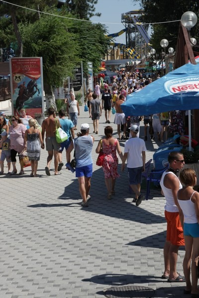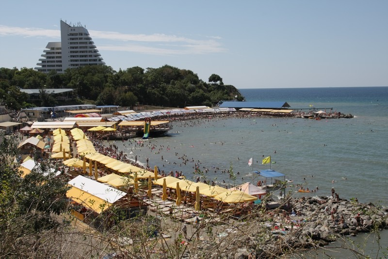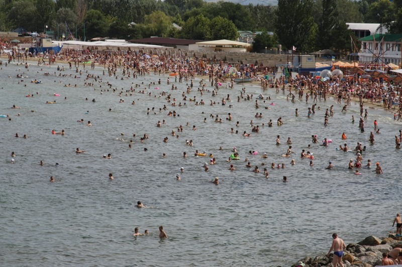 Вообще-то местные говорят, что в связи с надвигающимся 1 сентября, количество туристов на пляже уменьшилось вдвое.
