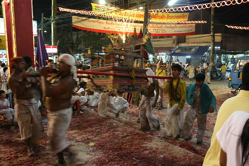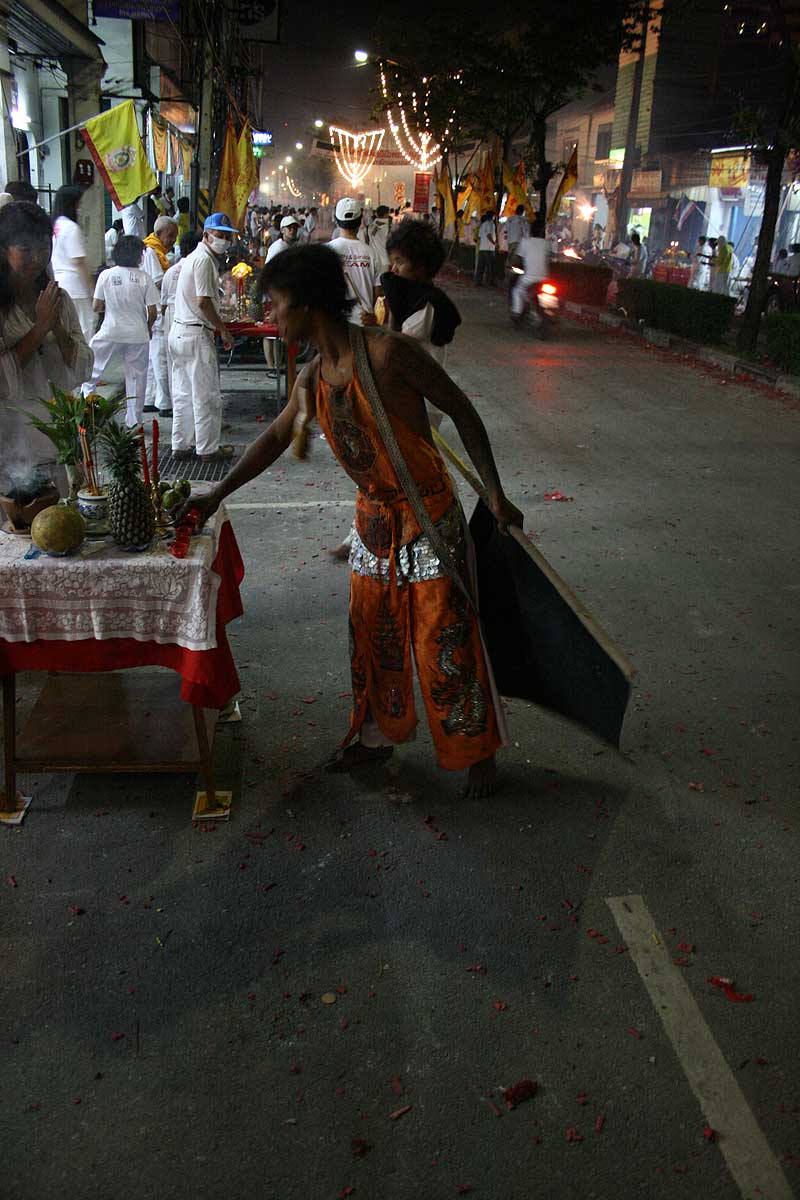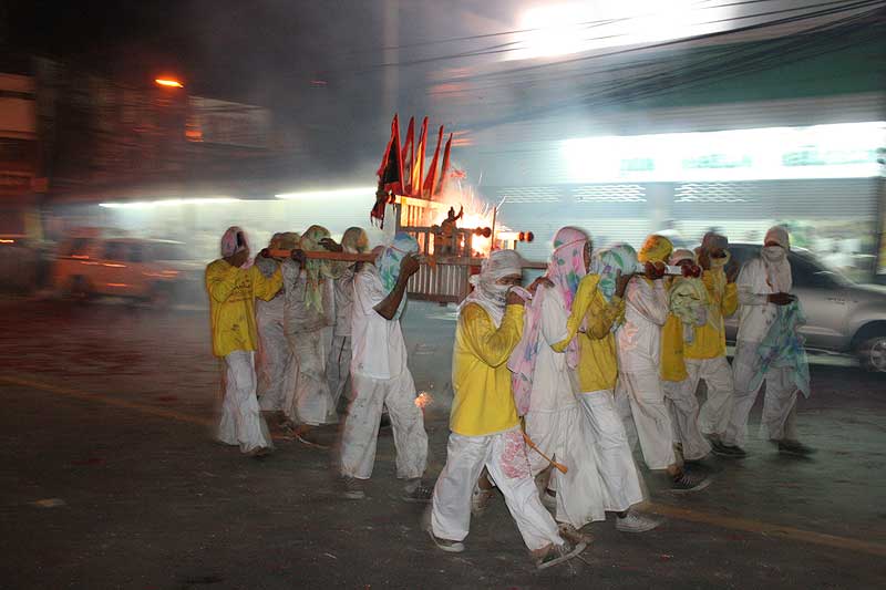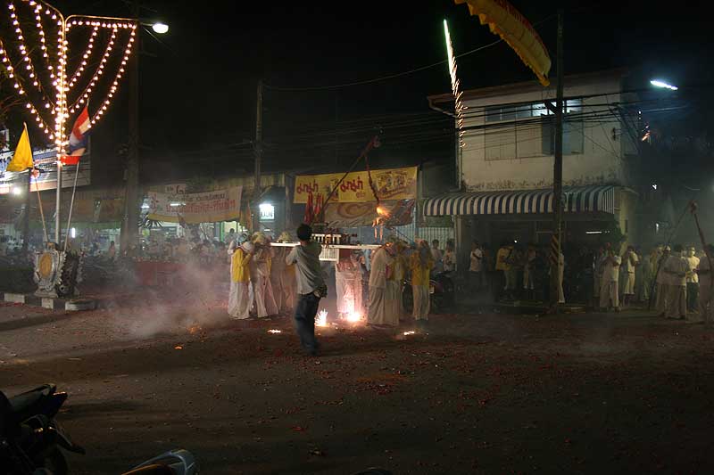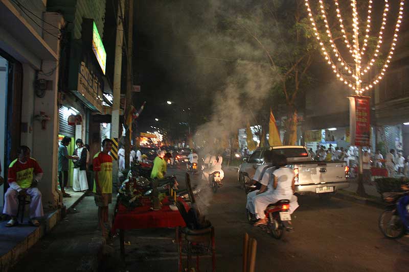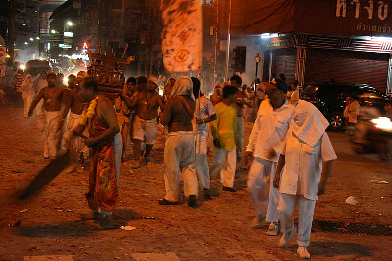 Финальное действо продолжается до полуночи. Усталые, обожженные, но довольные участники процессий возвращаются к Бангняо, главному китайскому храму города. Фигурки богов возвращаются в храм, спать ещё год, до следующего Вегетарианского Фестиваля, жители Пхукет-таун – домой, отмывать копоть с лиц и залечивать ожоги от петард, а немногочисленные белые туристы – в отели, осмысливать, что же на самом деле им довелось увидеть.