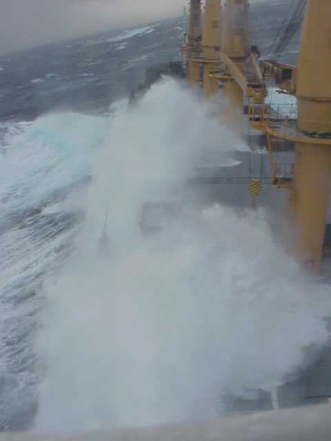 это где-то 7-8 этаж дома. на последнем снимке видно что волны легко перекатываюцца через палубу.