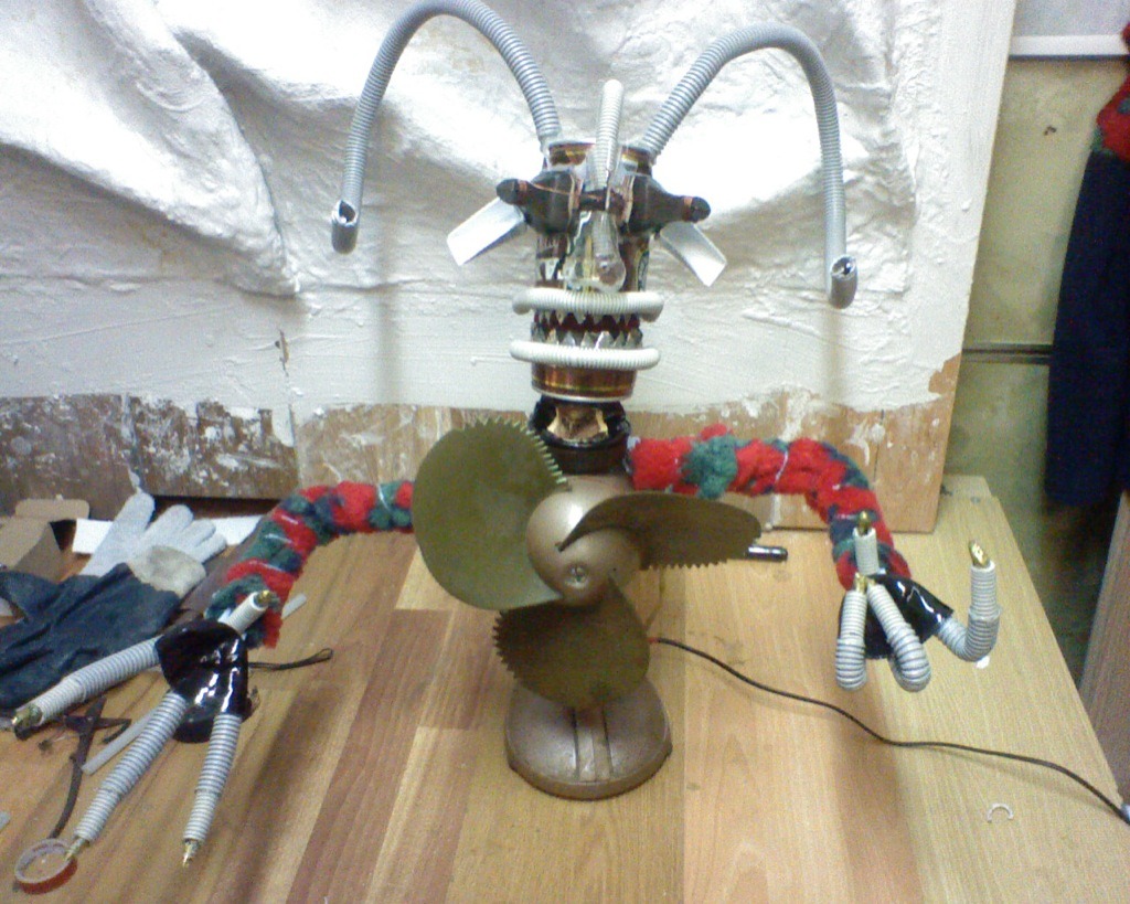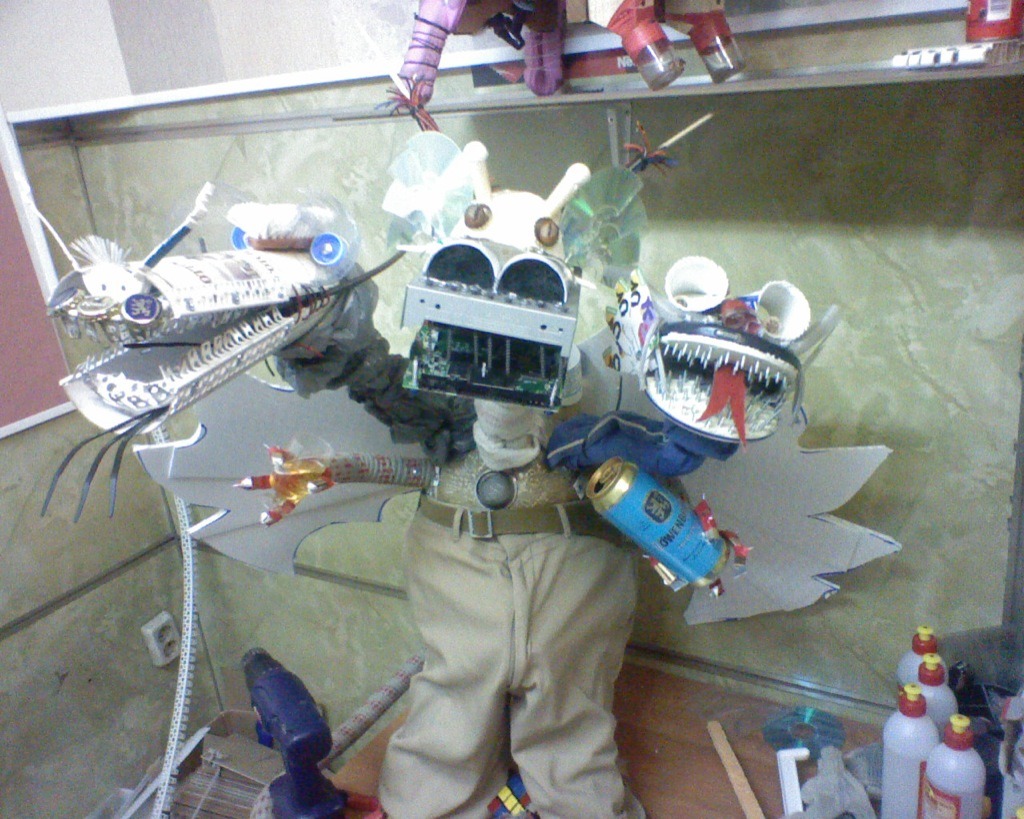 както рас в хельсинках в музее совр. искустав.видел монтсра, метров 10 высотой. из приемников и телевизоров собранного, и все работает, в огромном зале, свет выключен,Ю и красная подсветка.. и чтото еще шевелилось у него... короче круто..