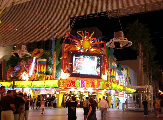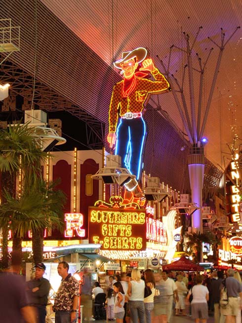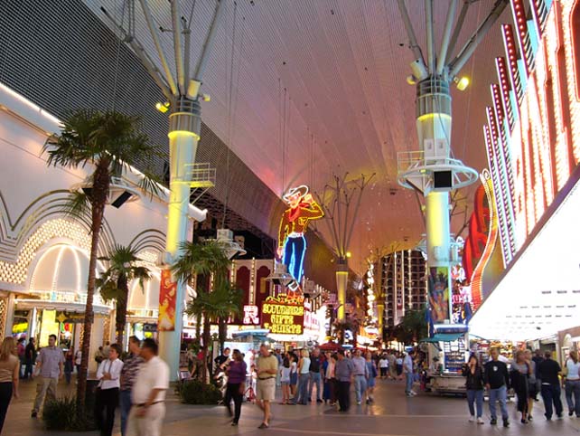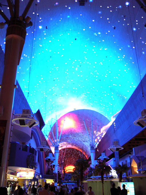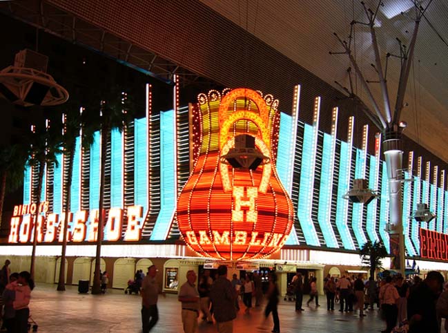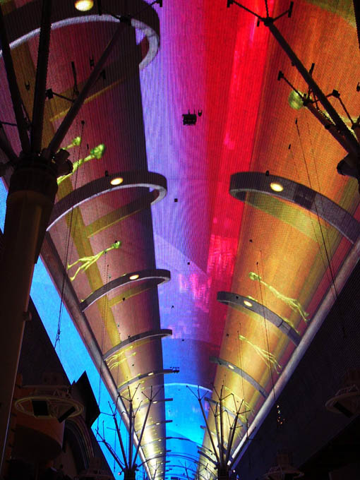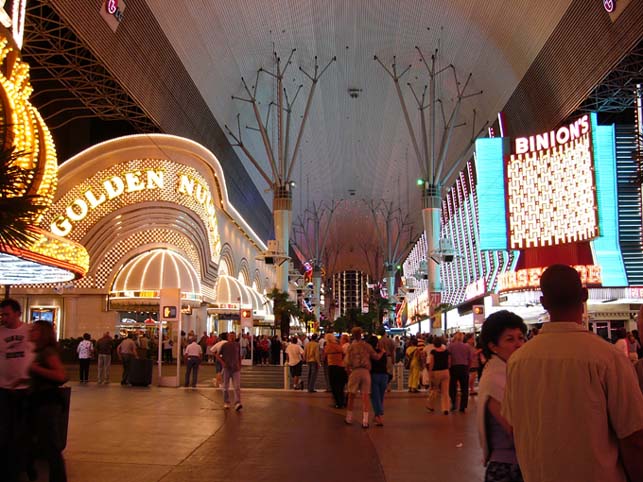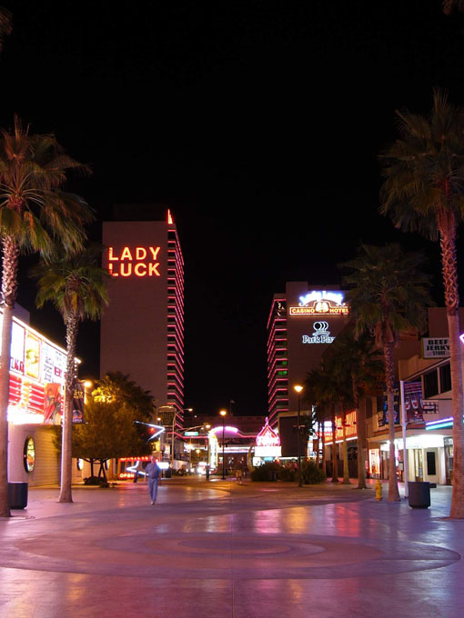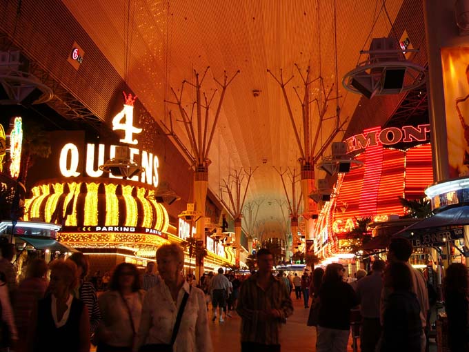 Гастиницы и казино старого города в аснавном групируюцца вдоль Фремонт стрит. Улитса чють ли не с покиламетра длиной перекрыта сверху агромным экраном. Вечером каждый час на экране паказваетцо так называимоэ «Лайт шоу» - фся реклама гасиццо и начинаетцо сианс. Зрелище надо сказать гламурное и беспезды феерическое, саправаждаецца музыкой. Каждый час праграмма разная. Жизнь замирает, фсе стаят и фтыкают в шоу.