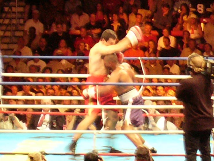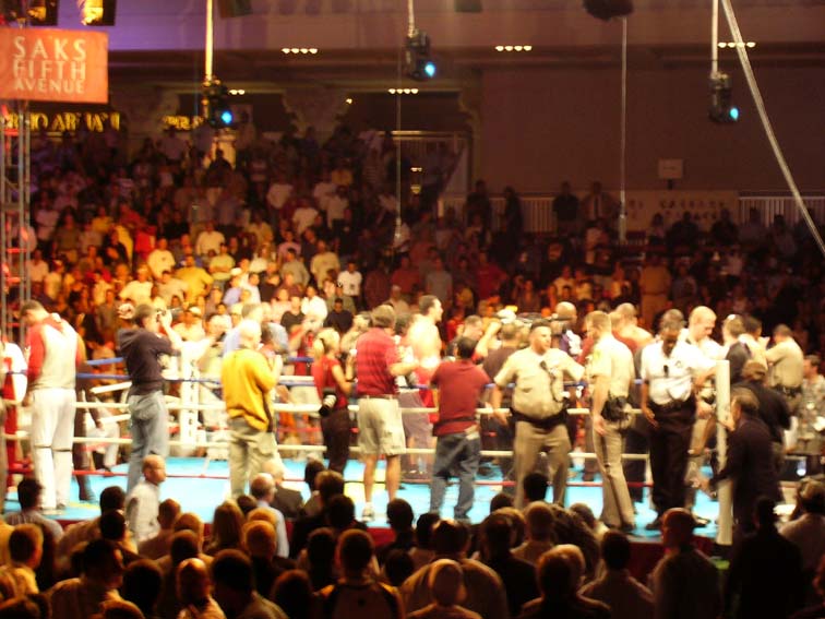 Клечко разбили ебальце где то раунде в 5, уже точно не помню. Но бились конечно знатно, было на что пофтыкать. Тут же собралась туса, минут 10 песдели и абъявили наканетц: «Тихнический накаут, иниибет! Бой пириносицца, пабедил фсиоравно Кличко, ебитесь в рот, дарагие зрители». Зрители канешно чювствовали себя жоско наброшенными на ржавый гвость. Такой вот «Бой с тенью иниибет». Но ф целом – интересно, атмасфера, бля.
