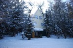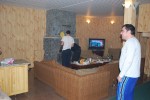 Отдельным абзацем нужно описать этот славный трехэтажный домик. Первый этаж – каминный зал, где также наблюдалась плазма дюймов на 38, мойка, небольшой холодильник  и широченные диваны, на которых мы так чудесно провели два дня. На втором и третьем этажах располагались 4 спаленки с кроватями, диванами, телевизорами и санузлами. Все чистенько и новенько. Сам домик стоит в сосновом лесу, занесенный сугробами. Сказка, да и только.