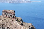 Рис.01. Вид на Санторини с борта лайнера. Кроме фуникулёра вверх есть историческая "ослиная" тропа (серпантин, который можно разглядеть на первом и втором фото). В настоящее время он тоже функционирует, и за определённую плату Вы можете подняться наверх таким путём.