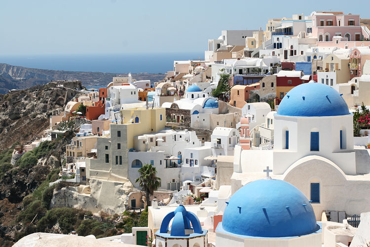 Ещё один забавный момент – характерное сочетание цветов в окраске храмов на Санторини: белые стены и голубой купол. В определённый период истории острова это стало своего рода манифестом за присоединение острова к Греции.