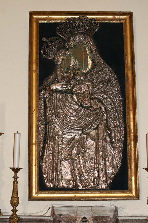 Икона в одном из храмов Таормины (Якобы лИца на иконе не видны невооружённым глазом, но проявляются на фотоснимках. У меня не проявились, пришлось вытаскивать Фотошопом, но даже после него лица различимы с трудом):