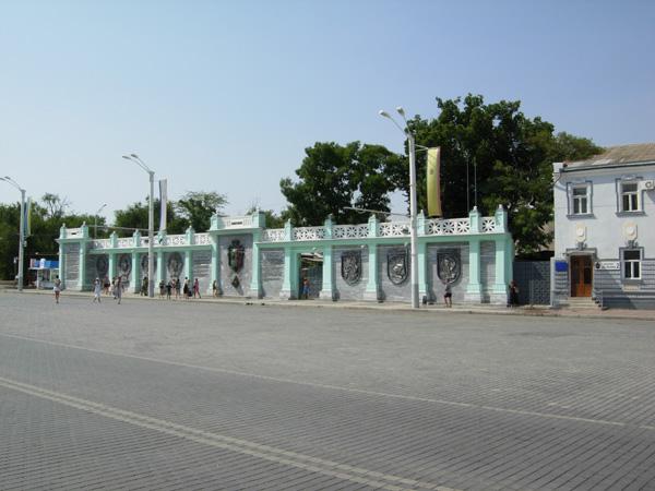 24.Театральная площадь. Вид на пантеон основателей города и вечного огня, привезенного из Греции кораблем ВМС Украины "Константин Ольшанский" в ознаменование 2500-летия Евпатории