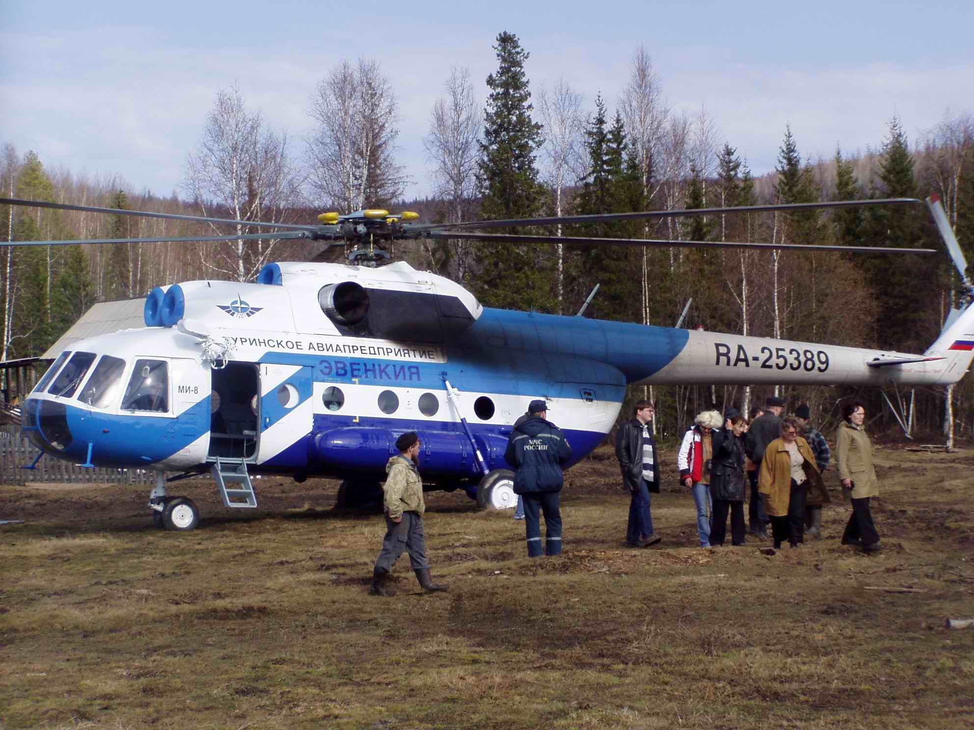 Вертодром в Туре. Вертолеты – основной вида авиатранспорта в Эвенкии.