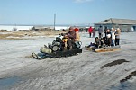 А это жители приполярного села Чиринда, едут  в аэропорт встречать вертолет.