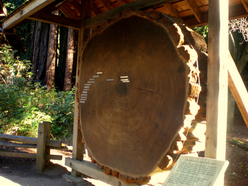 30-34 еще одна достопримечательность - спил редвуда, мелкими табличками отмечены события/эпохи и соответственно , величена дерева на указанный момент, впечатляет, смотрим......