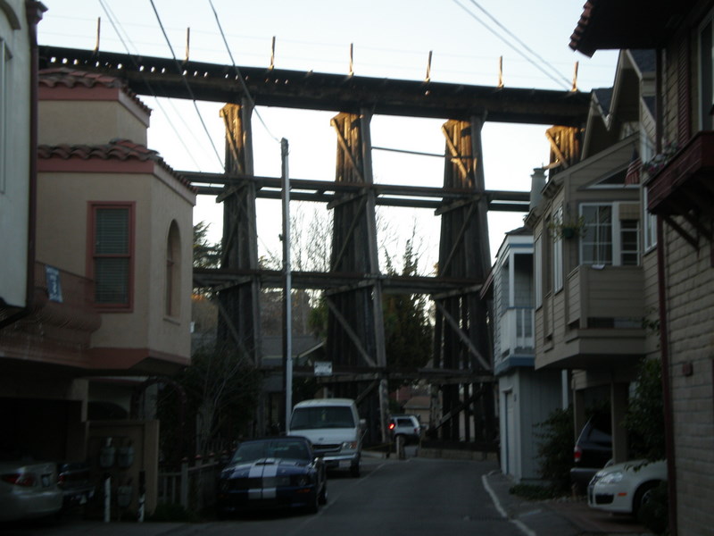 Знаменитая улица серфенгистов упирается еще в одну достопремечательность - старый деревяный железнодорожный мост, еще не так давно по нему поезда бегали, теперь в поездах нужды нет, железную дорогу разобрали а мост оставили на память