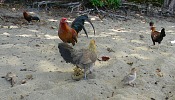 39-44 Куры - в 1992 году случился невъебенный ураган (к слову сказать их случается каждый год в среднем 4 и более раз) который разметал к хуям собачьим курячие фермы , которыми изобиловал остров. Курице разбрелись по острову и со временем одичале и так как не было ни какой возможности отлавить и вернуть их хозяевам. Теперь они (куры) достопримечательность на которой местное население делает свои небольшие но стабильные деньги.
