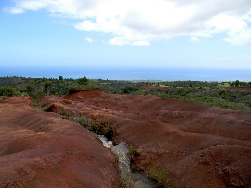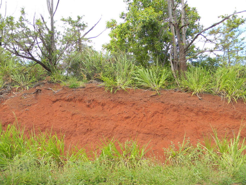 55-59 Красная земля - встречается на всех гавайских островах, но здесь она как-то особенно красная. Данная земля очень стойкий краситель, если вы селе в белом жоппой на что либо с крупицами этой земли, то проститесь с белым цветом - отстирать невозможно, даже после хлорки останутся пятна. Этой землей красят футболки, кепки , сумки и прочее, технология проста и незатейлива как кирпич - желаемая вещь замачивается в раствор земли и воды и обыкновенного уксуса на время от часу до суток (зависит от желания интенсивности окраса), затем вытаскиваете, ополаскиваете , сушите и все. Одного галлона земли хватает на 500 футболок размера ХХL