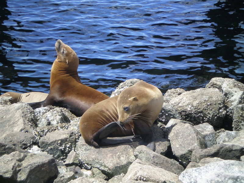 1-4 не далеко от Монтерея есть яхт-клуб который уже много лет облюбовали морские котики. По одну сторону хайвея - электростанция, по другую - лежбище котиков. Бревна сала, спят целый день,  иногда рычат, вонь от них ужасная.