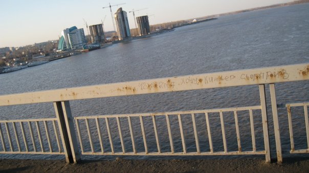 на фото нумбер 4 на перилах начкарябано "хочу киндер сюрприз". странна. в маём городе на перилах пишут "хуй", "песда" и "машка шлюха", а туд, прям барнаул какой то.
