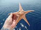 Порадовали в сетях полоски и штыри пороха, остатки несгоревшего от югославских подводных мин и торпед. Это такие коричневые пиздюлины, похожи на полоски окаменевшего дерева и на круглого сечения палочки длиной 60 см, или на пластмассу. Пролежав 70 лет на дне, тем не менее горят охуительно, а если засунуть их в закрытый объём можно взорвать, если сдетонировать. Взрывать не пробовали, но хату чуть не спалили. Эхо войны. На эхолоте видели на дне два затонувших военных корабля, один немецкий и один югославский. Ставили сетку вокруг корабля, попались одни скаты. Кстати, охуенное ощущение если ткнуть пальцем в спину электрического ската, напряжение там как в розетке почти, ток небольшой, но трясёт.