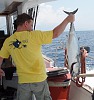 Ну мне простительно, я такое рыбо в основном в Индике ловлю, там их все парусниками (sailfish)называют. Хуй их разберешь, голубой он или черный марлин, а то и не марлин вофсе, а меч.