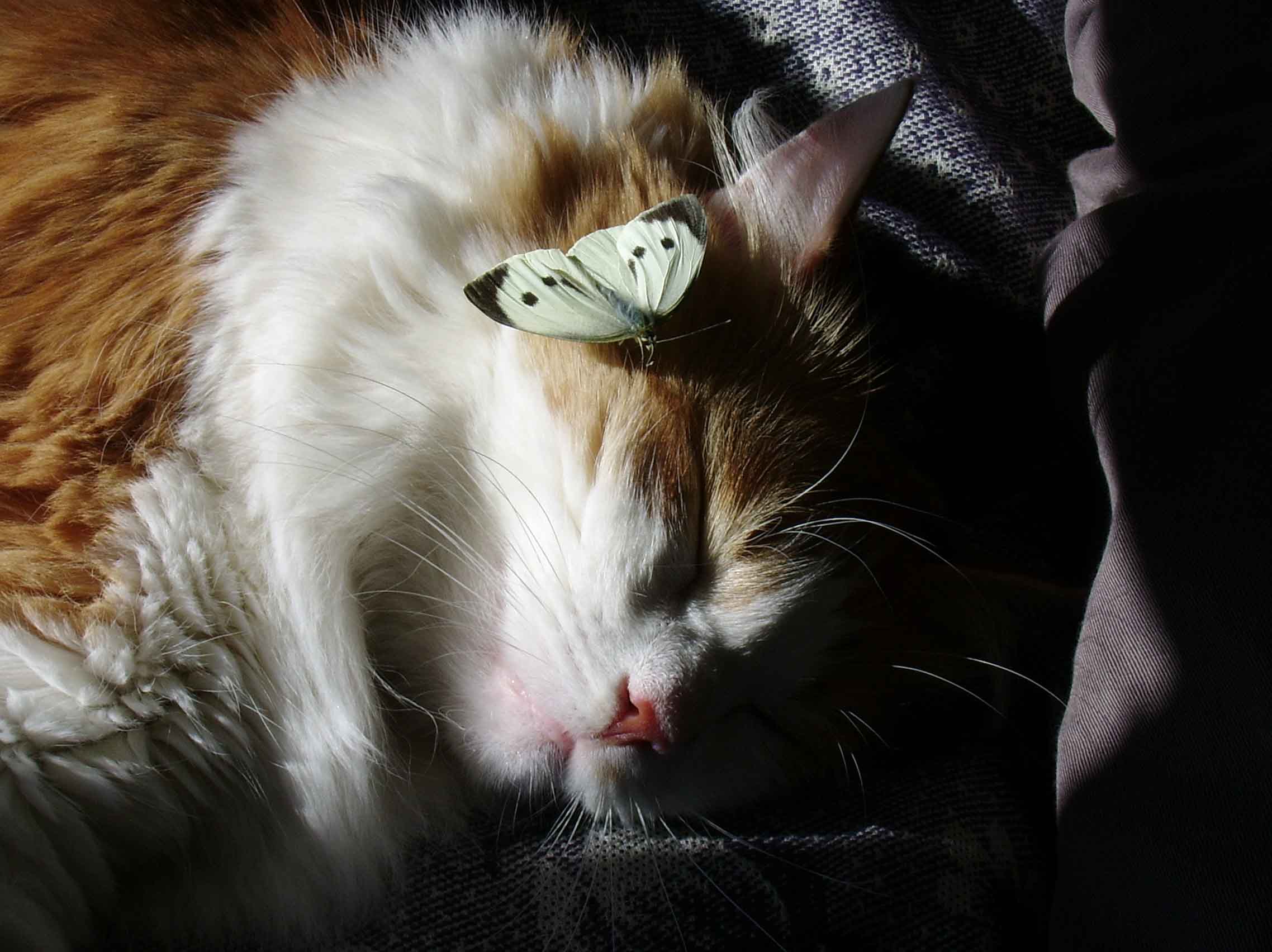 Безпокоит вот што, не склеил ли ласты котег под бабочкай. Если животное усопло, там через пару часов не только бабочки сидеть будут, но и мухи, и чирвички-опарышы.