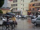 7 – олбанцы на велосипедах под дождем