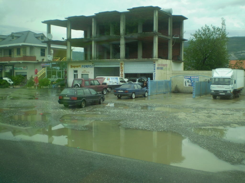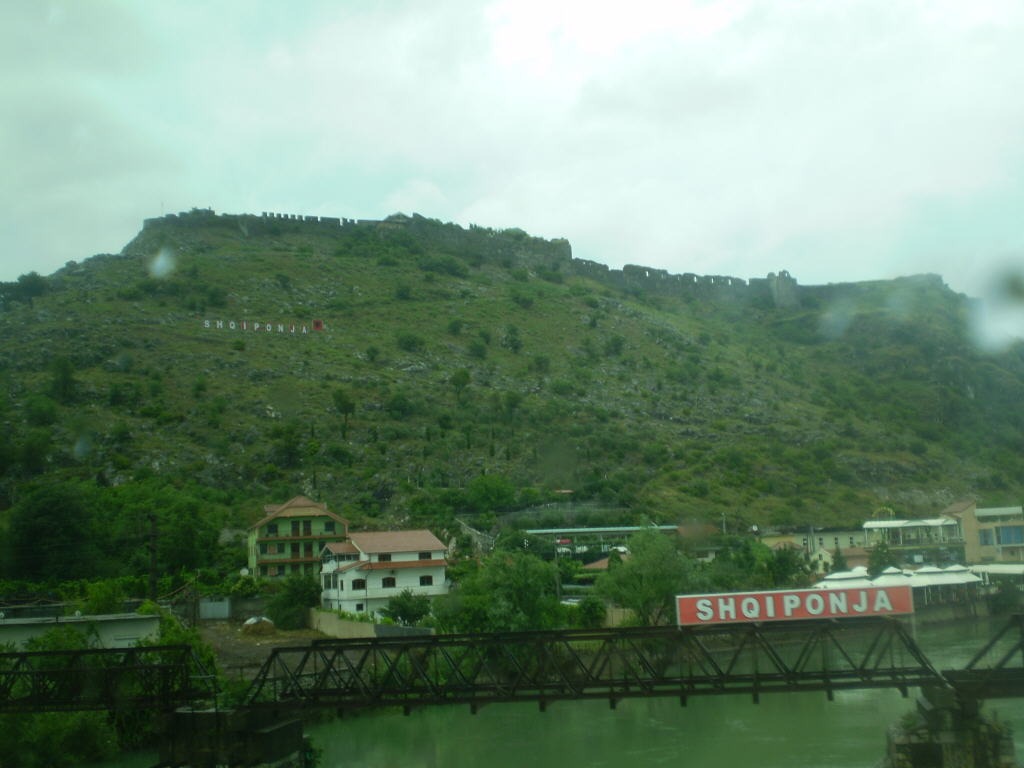 Поездка в Олбанею началась ранним дождливым понедельнечным утрам. Заранее извиняюсь за качество отдельных фоток, сделаных из акна афтобуса, да еще и в дошть. После 15-минутного фтыкания с промаканием до нитке на астанофке, афтобус помчал меня по черногорским серпантинам на юг в компании двух десятков российско-украинских, а также парочки француско-омериканскех падонкоф и пелотак, а также нескольких югославов, в компании местной дамы-гида, каторай прешлось вести экскурсею аж на трех языках – русскам,  английскам и сербскам. Быстро праскачили Черногорию, и вот уже пагранпереход на границе с Албанией. Предвкушая появление Олбанской границы и первых олбанцев, я жостко ахуел с того, што никакой Олбанской границы с паложенными по такому случею флагами, надпесями через всю дорогу и пограничнеками просто не было ! Сразу же за черногорским пунктом пропуска тупо начиналась она - Олбанея !!! Олбанскей флаг на обратном пути все же был замечен с тыльной стороны здания Черногорского КПП. В этом же самом зданее размищались и олбанскее погрантоможеннике. Вот это ход олбанцев – заодно и экономия средств для госбюджета какая ! О том, штобы запечатлеть паездку олбанскем штампам в загранпаспарте, и речи не было. Может, и самих этих штампав в природе не сущиствуит, кто их там знает !