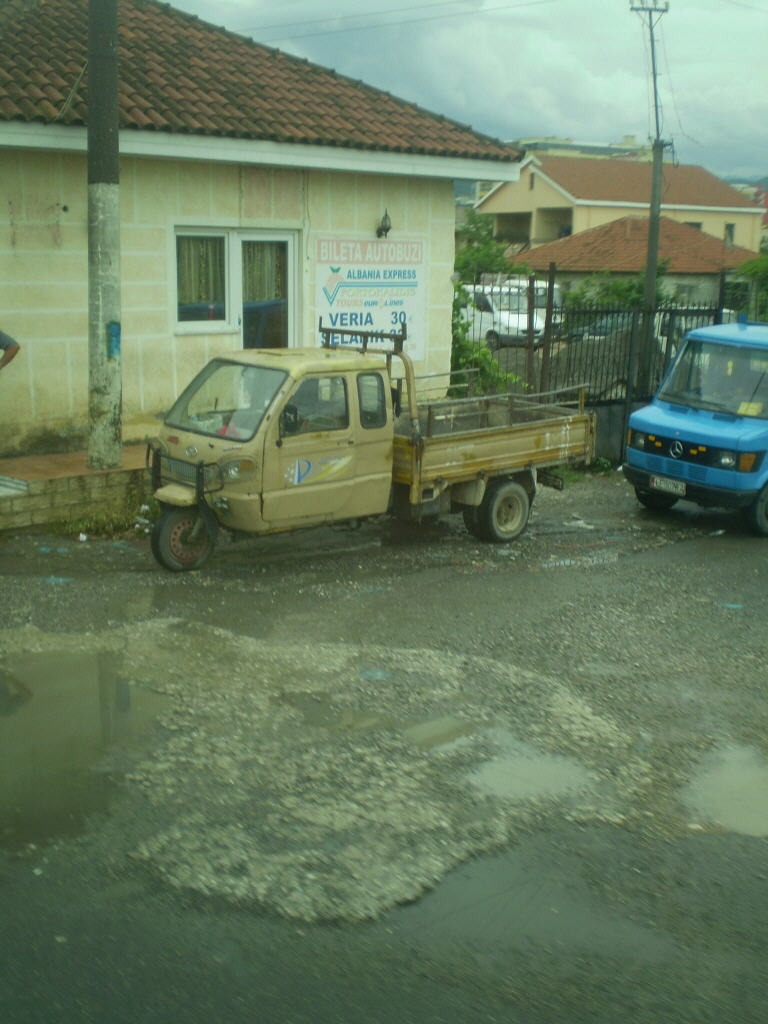 с водилой-олбанцем и возвращение в Черногорию. Казалось бы, на этом все, олбанскее впечатленея закончелись, но фигвам, не тут-то было. На обратном пути хрестоматийнае русскае народнае развличенее всему афтобусу арганизавала пелотка второва пред-ягодичного возраста (это когда в 45 бабо – ягодка апять) из славново города Рязане. Она банально не явилась к назначенному времени атправления афтобуса, и это еще при том, што паспарта всех туристов находились у гида еще с момента пересечения олбанской границы ! Во время вынужденнава прастоя русско-хахляцкей турестическей народ тусил у афтобуса и тиха материлсо. В это самое время по улеце праехала цыганская семья на чудо-девайсе о трех  калесах, вроде того, што изображон на фотке номер 10, но одно калесо у нево было не спереди, а сзади, там же находился и сам драйвер за рулем от мотоцыкла! Очень жалею, што не успел его сфоткать для одчеда… Добросовестно побегав по окрестностям и прождав ровно час, наша гидесса позвонила в олбанскую туркомпанею, оттуда довольно быстро приехал олбанец, катораму был таржественно вручон паспорд заблудшей рассеянки (вот тут олбанскей удиветельно в тему подошол!) с указаниями ждать ее появления, после чего наш «Михаил Светлов» сделал «ту-ту». Однако, на подъезде к границе (ехали примерно 2 часа под снова зарядифшим проливным дождем) нашему водиле моргнул фарами встречный таксист на чюдеснам жолтам «мерседесе», который на Великом и Могучем сообщил ему, што только што привез «руссо-туристо» на границу. Вернуфшись в туркаллектив, прапажа устроила гиду неслабый скандал, мотивировав свой кипеш тем, што она, мол, не услышала абъявления гида о времени збора в афтобусе (астальные 25 человек почему-то всё услышали),  и выражая бурное недовольство тем, што она попала на нехилое бобло (я думаю, никак не меньше 180-200 еврорублей) таксисту и што ее паспарту (в отличие от его хозяйки!) предстаит правести ночь в Олбанее. Кроми таво, гиду были абещены серьезные траблы на работе. На што весь офтобус вырозил мненее, што, во-первых, из-за таких вот «горе-туристаф» русских зачастую во всем мире считают гондонами, и, во-вторых, ее галимые притензее будут благапалучно послоны черногорскай турфирмай на йух. В заключенее рипартажа отмечаю две нераскрытые темы: олбанскех ментов и пелотак – што поделаешь, не все получилось успеть за один день, да исче и в икстримальных погодных условеях. Завершим же мы свой рипарташ атветам на главный вапрос: на што же фсетаке сопствинна похож олбанский ? Ответ будет очень простым: олбанский – это гремучая смесь туреццкаво и итальянскаво, што также объясняецца давольна проста: эти два народа по очереде гнобиле олбанцеф на протяжение их нелехкой олбанской исторее.