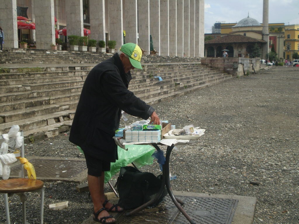 52 – днем на площади Скендербега торгуют мабилами, которые скорее всего здесь же и атжимают по вечерам. еще были замечены темные личности с жолтыми цыпями в руках. из чего были цепи – история умалчивает
