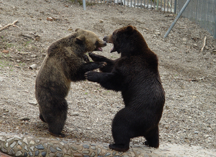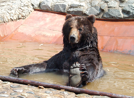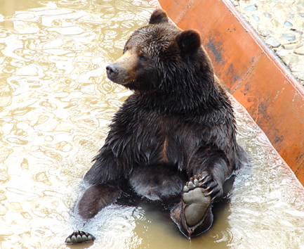 В свободное от работы время я люблю задержаться на работе с фотоаппаратом. Бурые медведи – мои любимцы, патамушто они очень похожи на людей.. у них фсе – как у людей. Они любят, скучают, ревнуют, заигрывают, когда хорошее настроение и обижаются, когда на их заигрывания не отвечают… они заботливые родители и беспечные молодожены… короче жизнь медведа – малина… за ним убирают жилище, приносят вовремя еду и меняют воду в бассейне. Штоб фсе так жили! Полгода спят, штоб оставшиеся полгода есть и толстеть. Ну а если серьезно, глядя на них, не завидую тем, кто видел их в дикой природе…