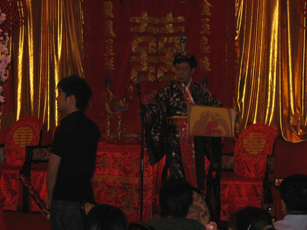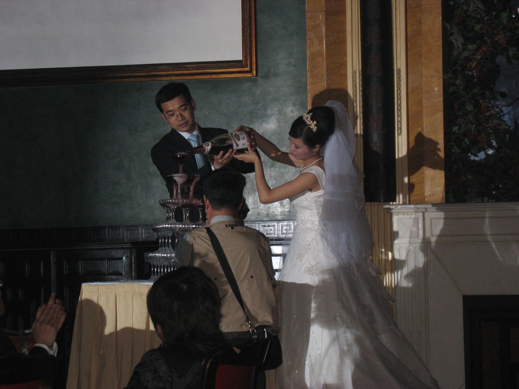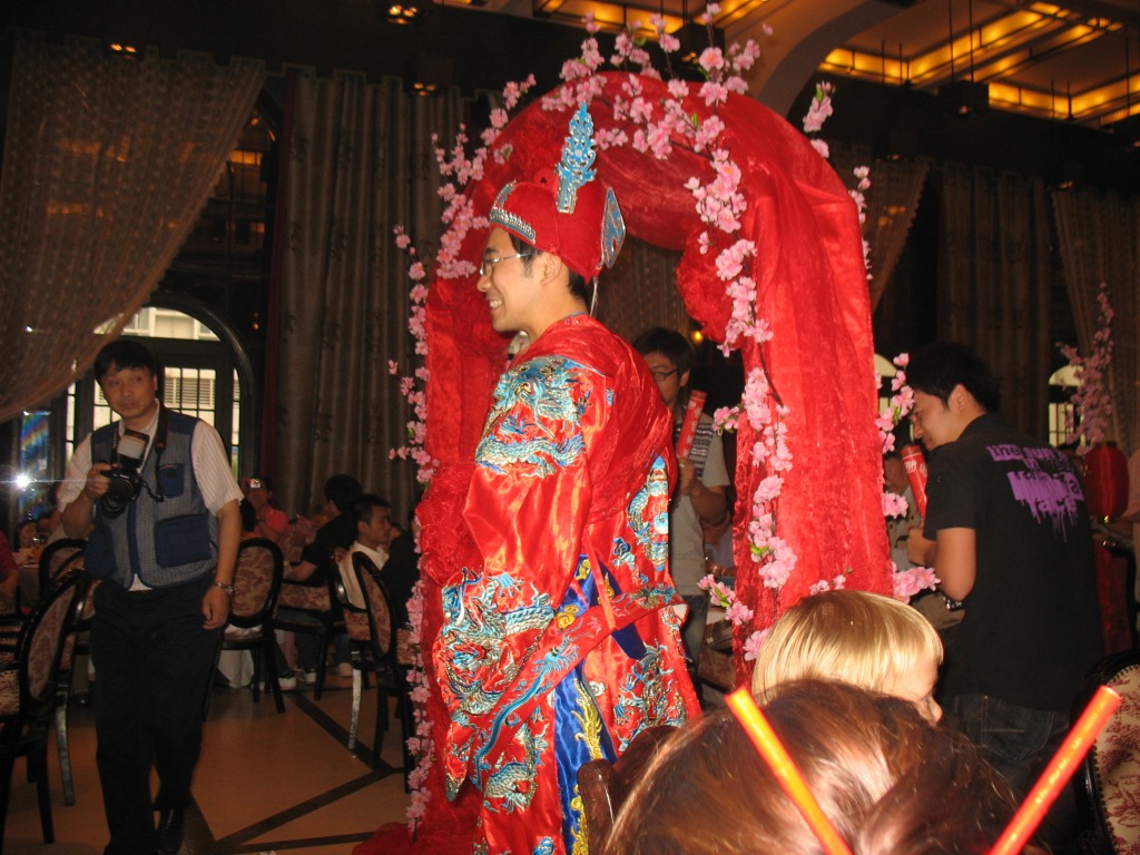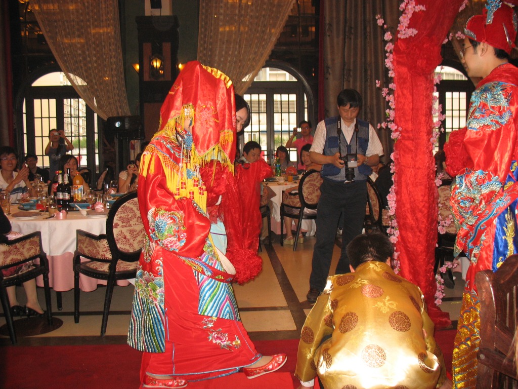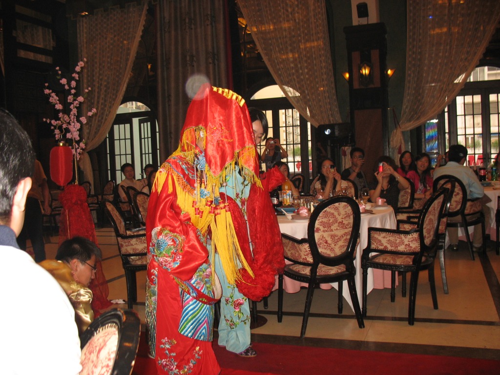 Потом было даже нечто вроде викторины и конкурса – для китайской свадьбы весьма необычно, чаще все ограничивается посиделками за столами. Невеста бросала букет, резала совместно с женихом торт, угощала родителей жениха вином – когда рождается в семье девочка, горшок с вином закапывают в землю до её свадьбы. А потом, на свадьбу, его извлекают и распивают. Насчет вкуса не знаю, но, учитывая, что оно уже изначально довольно специфично, могу представить, что с ним лет за двадцать пять происходит...