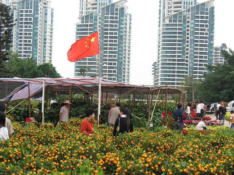 9. Буйство мандариновых кадок (китайский вариант нашей новогодней ёлки) и флаг, цветом и звёздами вызывающий лёгкую ностальгию.