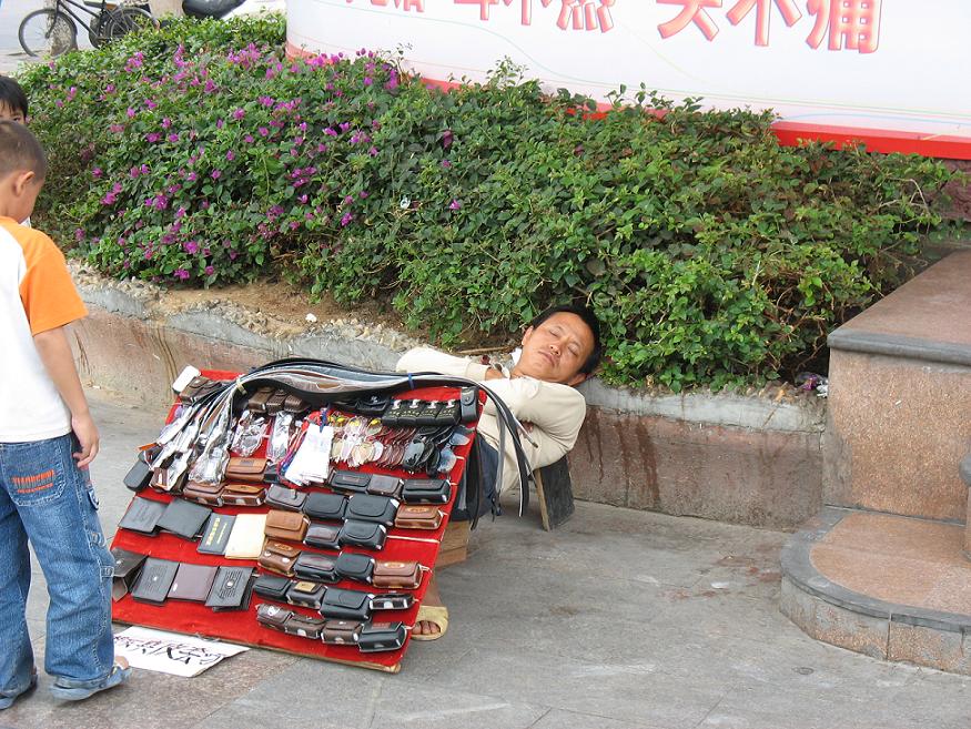 Все улицы курортной зоны и самой Саньи заплёваны характерной красной харкотиной. Это «пиньлан», растительная поебень, которую жуют местные жители. Небольшой продолговатый плод разрезается на четвертушки, заворачивается в обмазанный чем-то белым листик и жуётся на манер жевательного табака. Слюна становится ярко-красной, и её надо постоянно сплёвывать. Эффект от «пиньлана» я ощутил дважды – первый раз, когда пожевал (легкое головокружение и небольшая потеря ориентации), а второй – когда увидел руки торговцев этой дрянью. В тот день пил под ворчание жены особенно много, «в целях дезинфекции организма».
