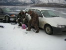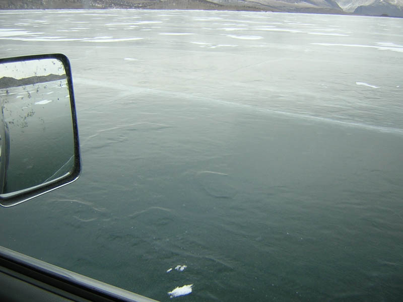 Если долго тихо сидеть в машине, становится заметно, как она медленно-медленно двигается по направлению ветра. Лёд такой гладкий, что устоять трудно даже в шипованных сапогах. Иногда возникает ощущение (особенно во время езды), что ты, словно Хесус, движешься по поверхности воды.
