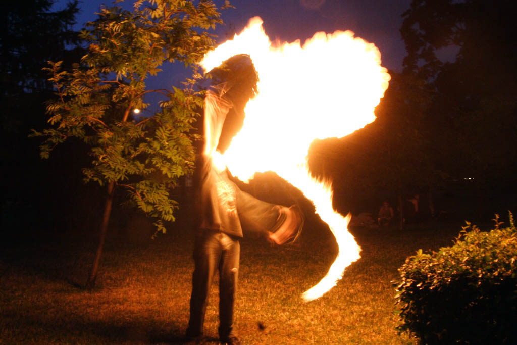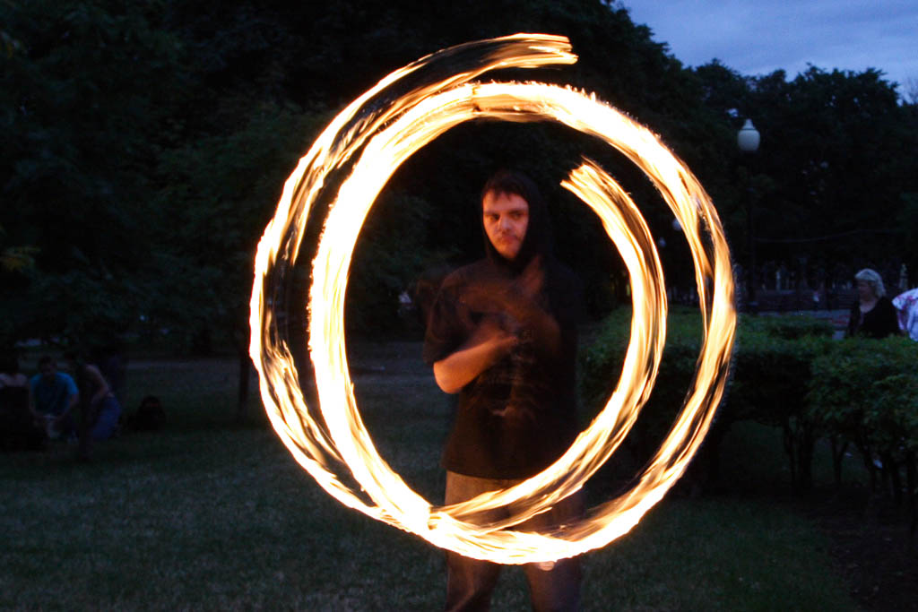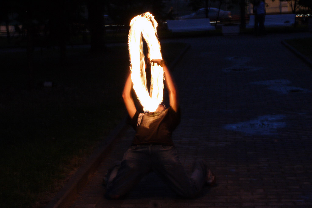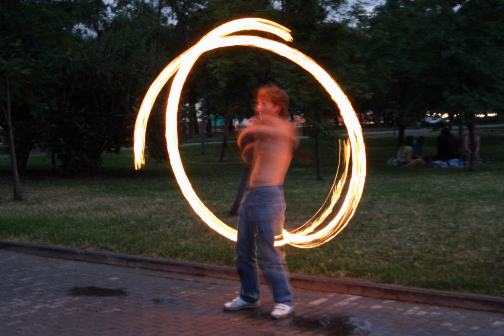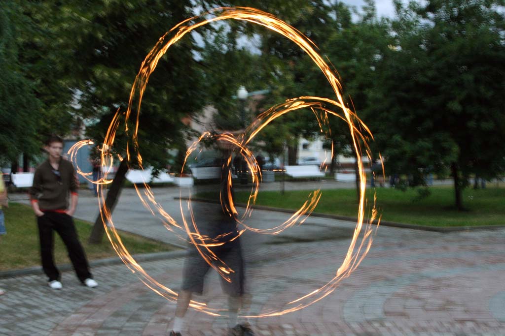 Движение файерщиков стремительно расширяется, создаются целые ассоциации клубов, много сайтов, форумов, фестивалей, куча информации. Сам этим не занимаюсь, тонкостей не ведаю, но черт возми внешне очень лихо у них получается, к тому же обязательный стук там-тама на фоне.
