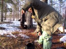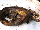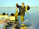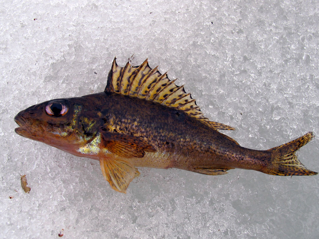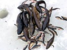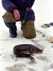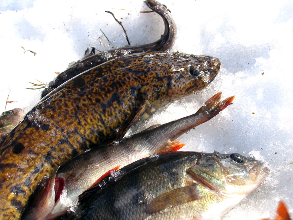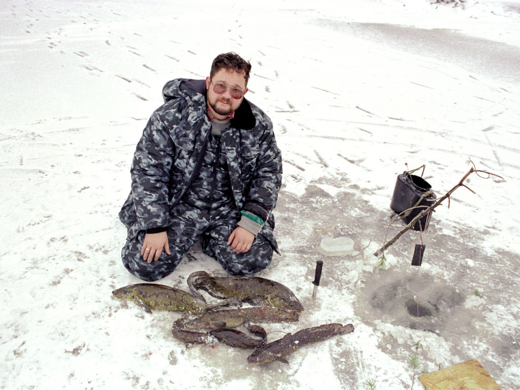 Цель рыбалки – налим. Это рыба собственно пресноводная треска, которая после ледника осталась в реках и озерах. Повадки северной рыбы остались, нерестится зимой, ловится, чем холоднее, тем лучше. Питается падалью и больной рыбой, с голодухи может и ветку сожрать. Чтобы это переварить имеет громадную печень и мочевой пузырь. Очень напоминает сома. Без чешуи, мясо жирное, без костей. В Онеге и больших северных реках (Обь, Енисей) вырастает до 20 килограмм, мы ловим обычно по 1,5 – 2, рекорд рыбалок 5,5 кг. Техника лова предельно проста. Днем ловим на удочку мелких ершей и окуней, насаживаем на толстую капроновую нить с грузиком и тройником, в прорубь на ночь. Налим охотится ночами, тупо заглатывает наживку и сидит, ждет рыбака. Помните, как волк хвостом из проруби рыбу ловил? Ловись рыбка большая и малая. Вот как раз это и были налимы.