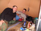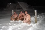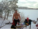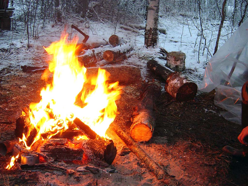 Много времени уходит на быт, одеться-раздеться, просушить вещи и снасти, нагреть воды, приготовить еду. Все продукты и жидкости в пластиковых бутылках, весь мусор в конце сжигаем. Принцип – ни клочка бумажки после нас, даже посуду чистим только содой. Готовим на костре или газовой плитке. Освещение газовое. Из развлечений домино, анекдоты, байки и чтение вслух. Креативы Удава в том числе. Из напитков популярна смесь трех частей воды и двух частей спирта, смешать по объему, спирт лить в воду, не наоборот, добавить немножко глюкозы. Задачи « нажраться» никто себе не ставит, это не санаторий, страховка не действует. Про зимний воздух, костер, природу и ночное небо писать не стану.