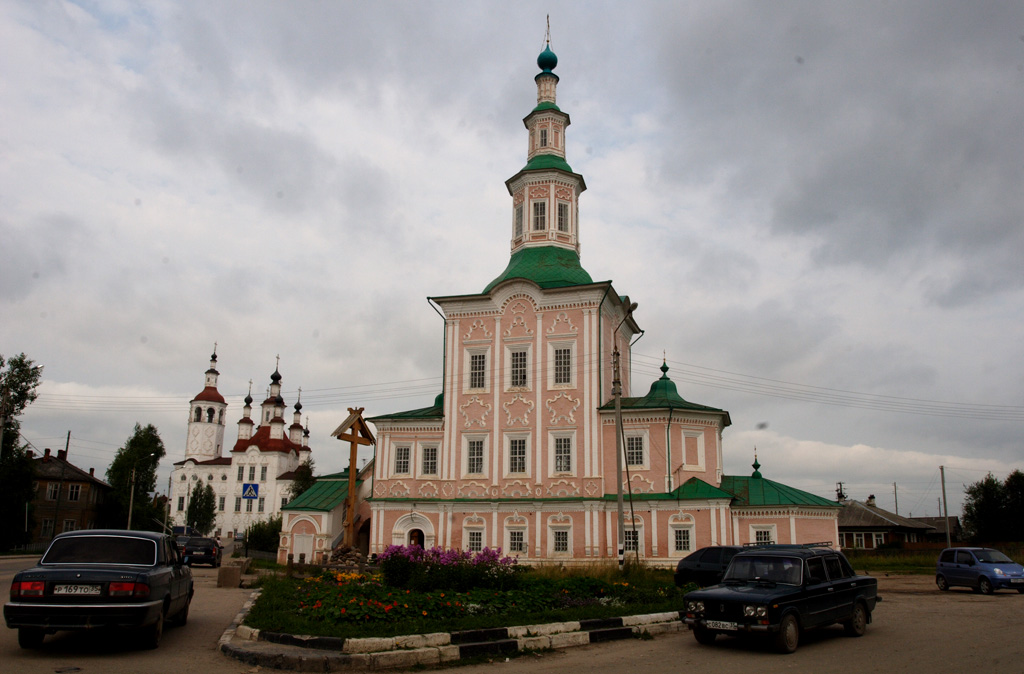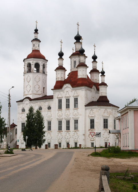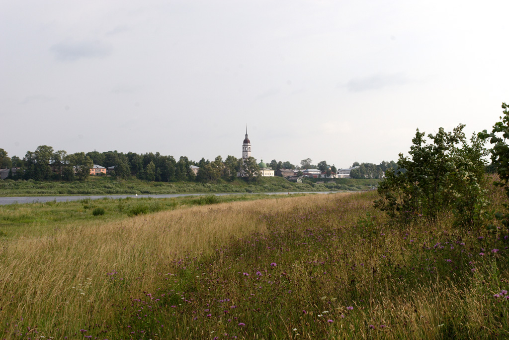 Итак, дальше на север, точнее 200 километров на Северо-восток от Вологды. Здесь на левом берегу реки Сухоны (ударение на первый слог) стоит старинный городок Тотьма (1137г.)