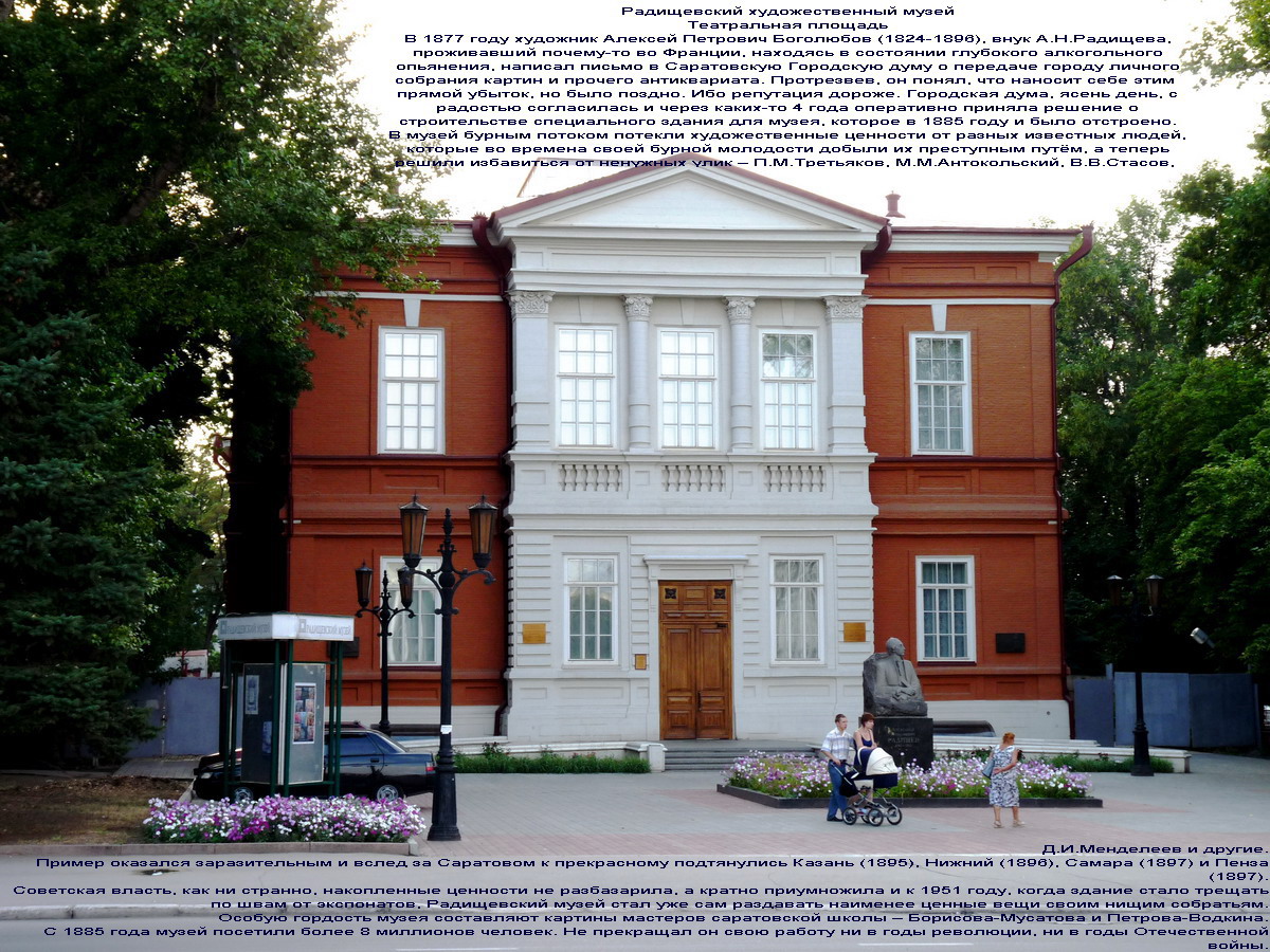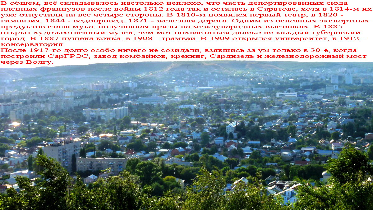 А я приглашаю вас на небольшую виртуальную прогулку по неофициальной столице Поволжья. Именно так называли Саратов с конца XIX века, когда он был 3-им по численности городом России, уступая только Санкт-Петербургу и Москве (сейчас – 16-й).
